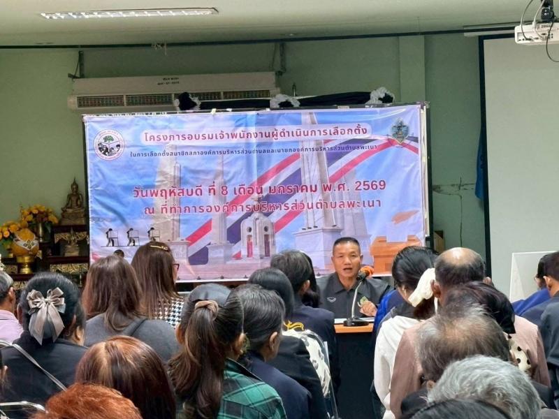 วันที่ 8 มกราคม 2569 เวลา 08.30น.องค์การบริหารส่วนตำบลพะเนา จัดการอบรมคณะคณะกรรมการประจำหน่วยเลือกตั้ง(กปน.)ทั้ง 9 หน่วย เพื่อให้มีความรู้ ความเข้าใจในหน้าที่และอำนาจตามกฎหมายว่าด้วยการเลือกตั้ง สามารถปฏิบัติหน้าที่ได้อย่างถูกต้อง โปร่งใส เป็นธรรม เพื่อคณะคณะกรรมการประจำหน่วยเลือกตั้งมีบทบาทหน้าที่และอำนาจของคณะกรรมการประจำหน่วยเลือกตั้ง กฎหมาย ระเบียบ และข้อปฏิบัติที่เกี่ยวข้องกับการเลือกตั้ง ขั้นตอนการจัดการเลือกตั้งในวันเลือกตั้ง การอำนวยความสะดวกแก่ผู้มีสิทธิเลือกตั้ง การนับคะแนนและการจัดทำเอกสารหลังปิดหีบ แนวทางการแก้ไขปัญหาเฉพาะหน้า และการป้องกันการทุจริตเลือกตั้ง และเป็นไปตามระเบียบของคณะกรรมการการเลือกตั้ง