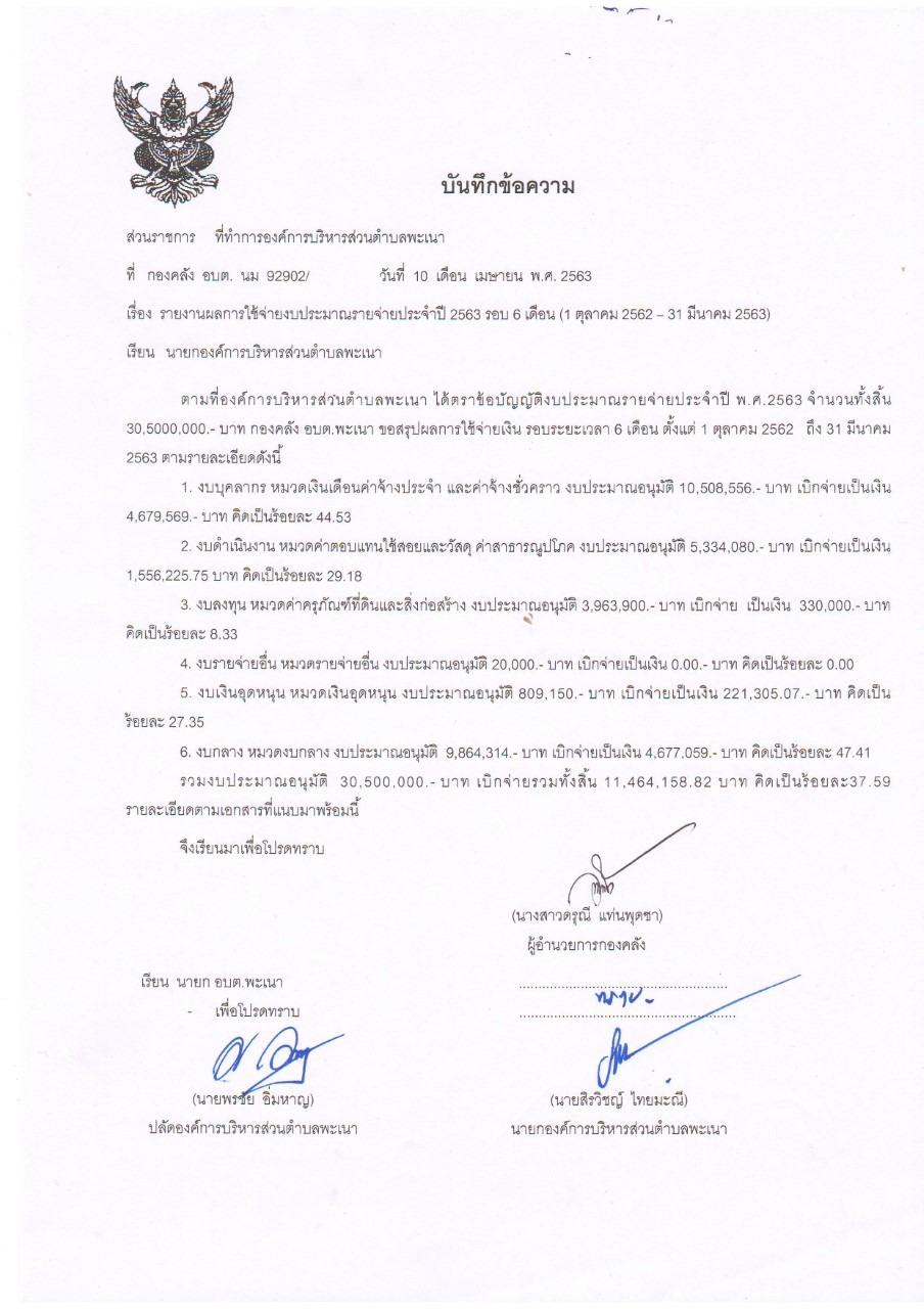 รายงานผลการใช้จ่ายเงินประจำปีงบประมาณ 2563 รอบระยะเวลา 6 เดือน ตั้งแต่วันที่ 1 ตุลาคม 2562-31 มีนาคม 2563