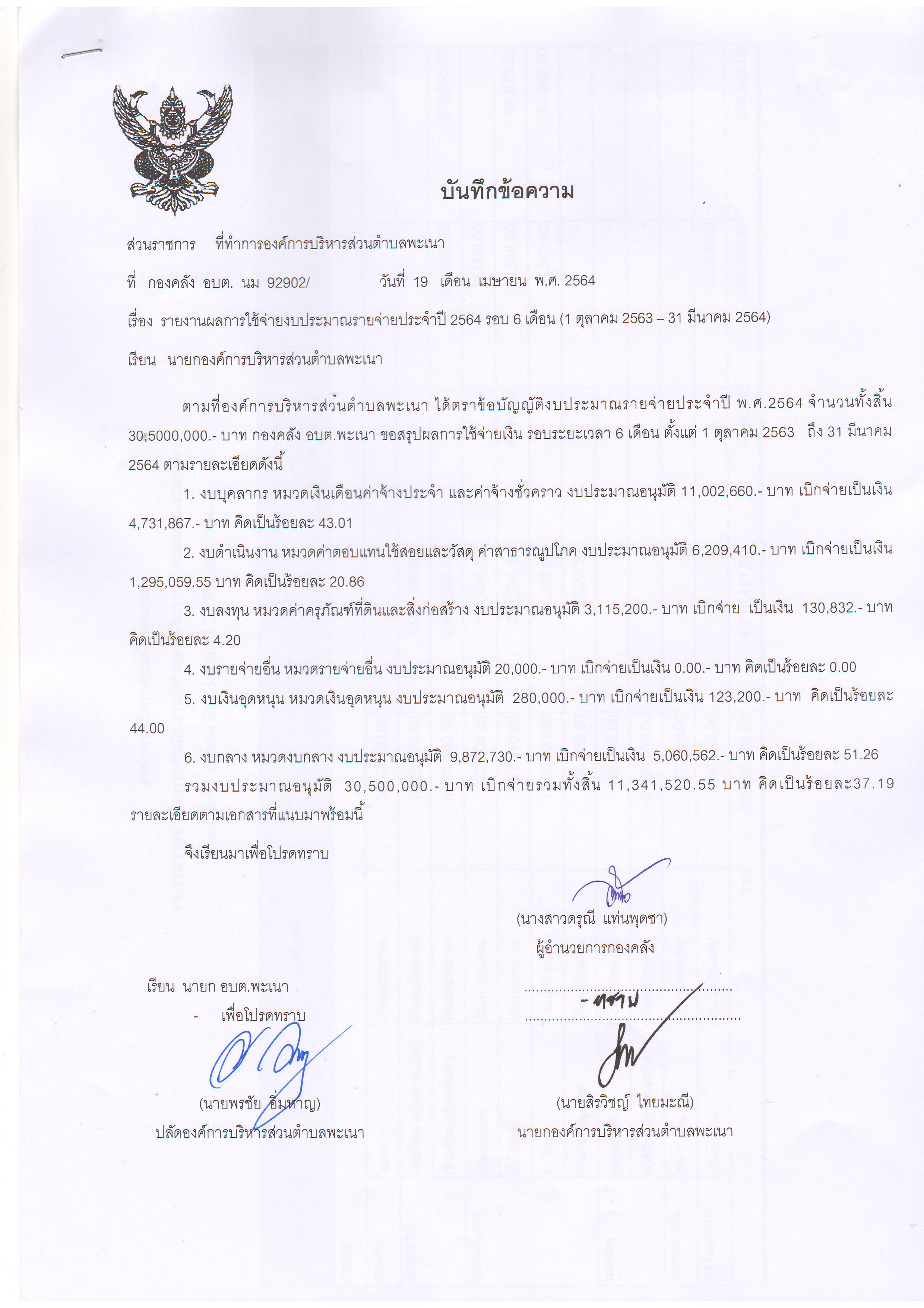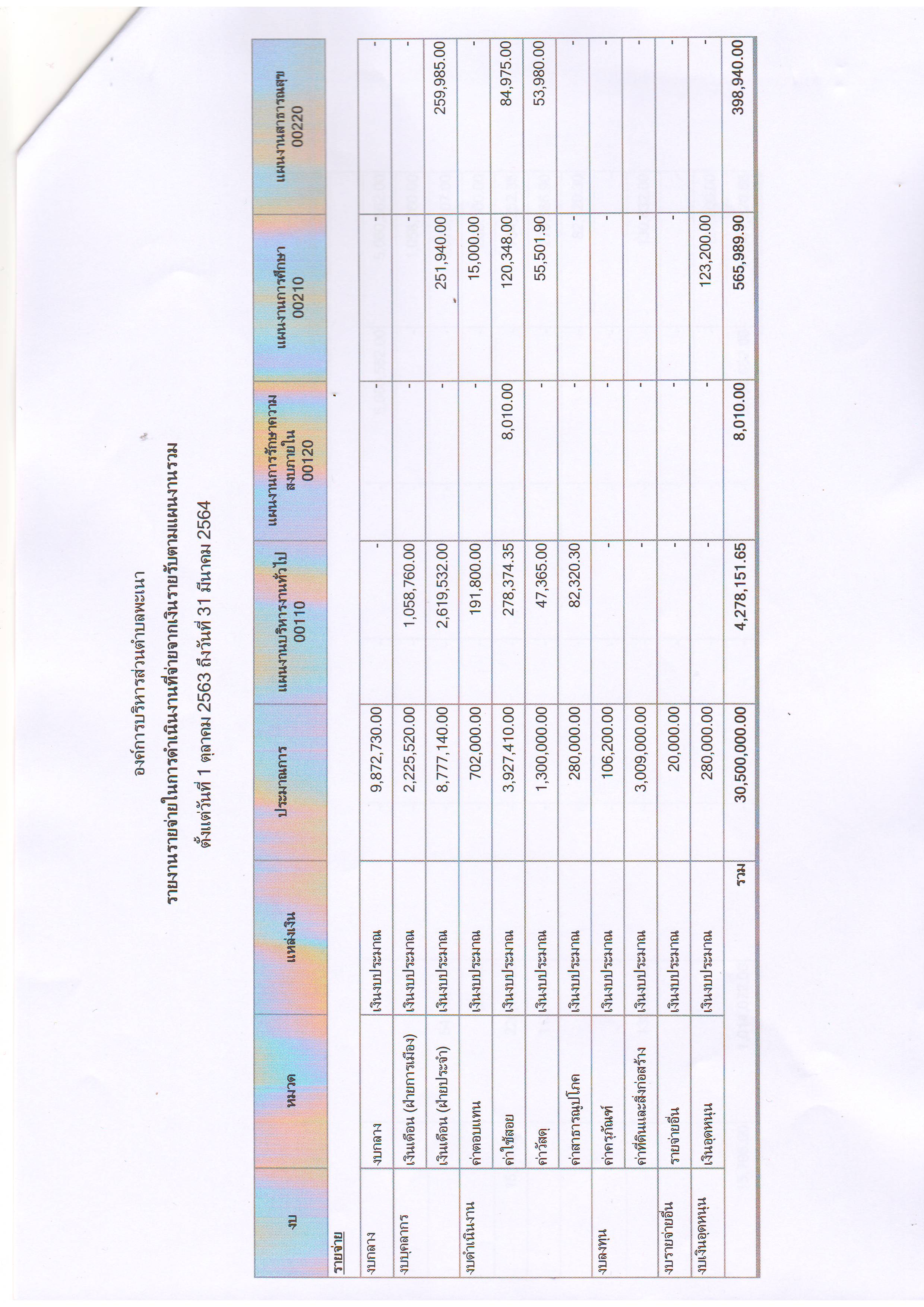 รายงานผลการใช้จ่ายเงินประจำปี 2564 รอบ 6 เดือน (1 ตุลาคม 2563-31 มีนาคม 2564)