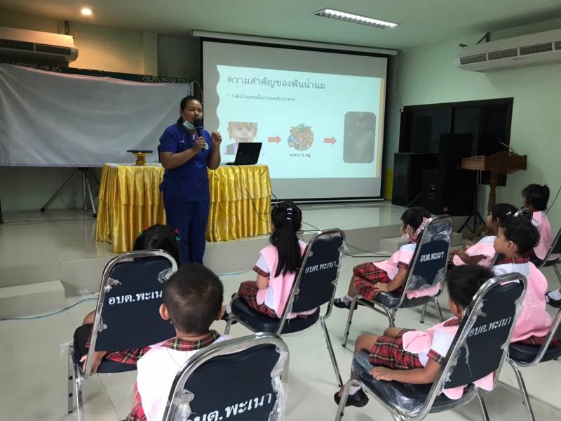 รายละเอียด : วันที่ 9 พฤศจิกายน 2566 เวลา 08.30 น. นางสาวพัฒน์นรี กุลรัตนาพันธ์ นายกองค์การบริหารส่วนตำบลพะเนา ร่วมกับคณะผู้บริหาร เป็นประธานเปิดโครงการส่งเสริมสุขภาพฟันในเด็ก ประจำปี2566 ณ ห้องประชุมองค์การบริหารส่วนตำบลพะเนา มีเด็กก่อนวัยเรียนจากศูนย์พัฒนาเด็กเล็กเข้าร่วมอบรมและเคลือบฟลูออไรน์เพื่อป้องกันและควบคุมโรคพันผุอย่างต่อเนื่อง โดยวิทยากรจาก รพ.สต.มะเริงน้อย เป็นผู้บรรยายการดูแลฟันสำหรับเด็ก