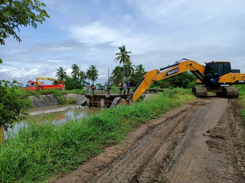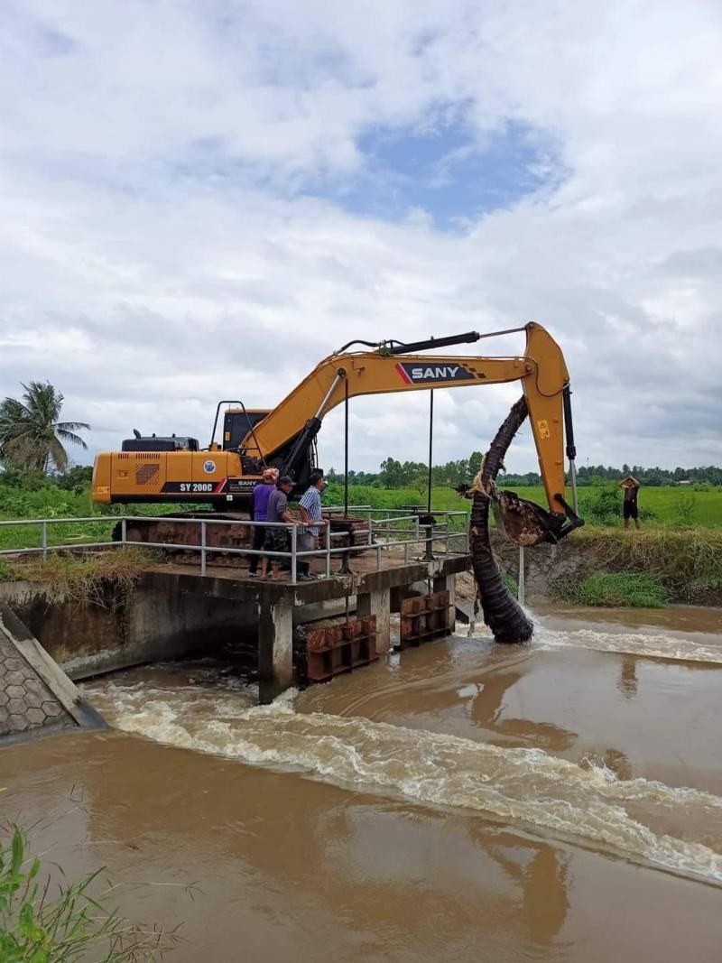ดำเนินการขุดลอกคลองเพื่อป้องกันปัญหาน้ำท่วมขังเนื่องจากฝนตกอย่างต่อเนื่องจากพายุโนรู