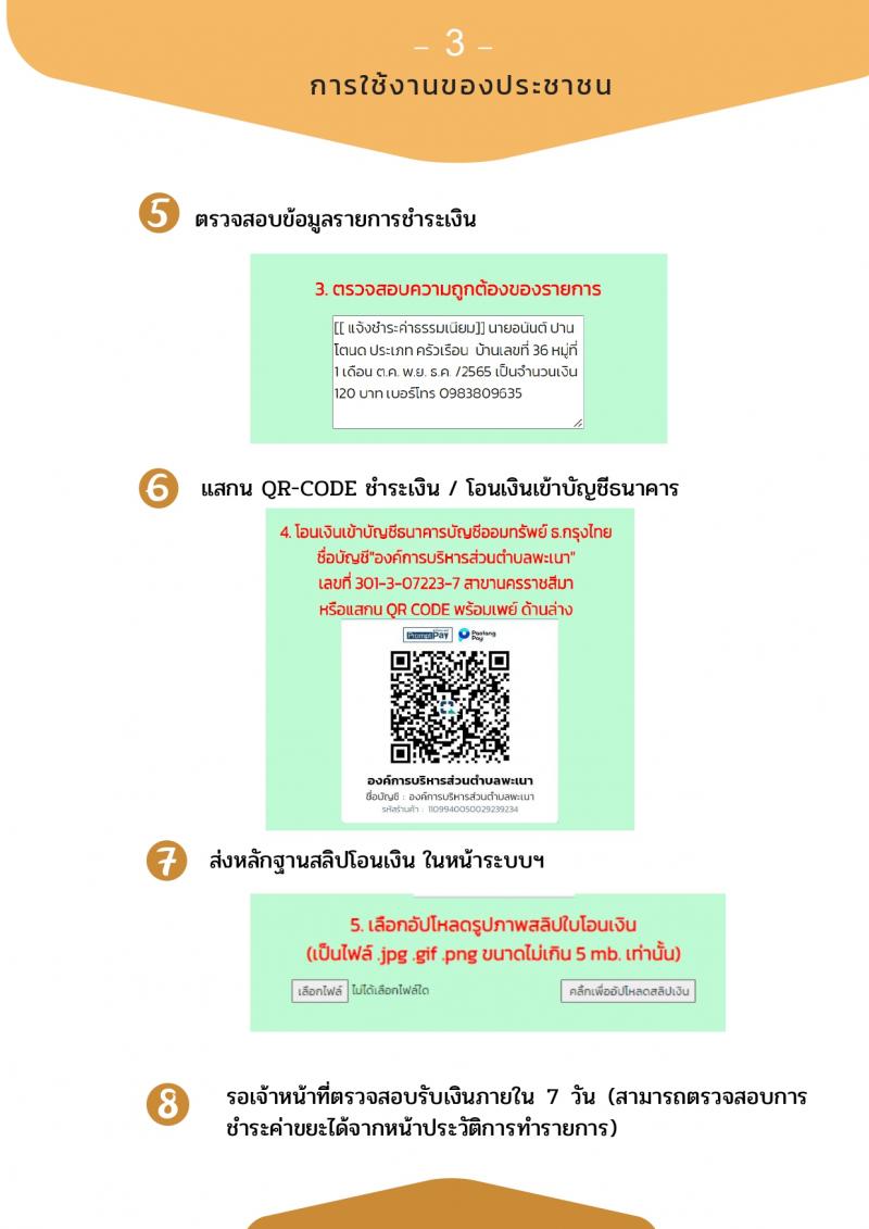 รายละเอียด : วันที่ 23 สิงหาคม 2566 เวลา 09.00 น. นางสาวพัฒน์นรี กุลรัตนาพันธ์ นายกองค์การบริหารส่วนตำบลพะเนา ได้มอบหมายให้ นายสมาน ยอมมะเริง รองนายก เป็นประธานเปิดโครงการ “พัฒนาระบบเทคโนโลยีดิจิทัล” ประจำปีงบประมาณ 2566 (อบรมเรียนรู้ผู้ชำระค่าธรรมเนียมขยะออนไลน์) ณ ห้องประชุมองค์การบริหารส่วนตำบลพะเนา โดยมีวัตถุประสงค์เพื่อให้ประชาชนสามารถตรวจสอบยอดค้างชำระค่าธรรมเนียมขยะได้ เพิ่มตัวเลือกในการชำระค่าธรรมเนียมขยะ และสามารถเก็บประวัติการชำระเงินเป็นหลักฐานได้
