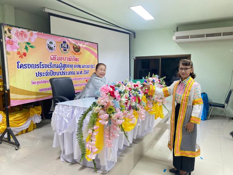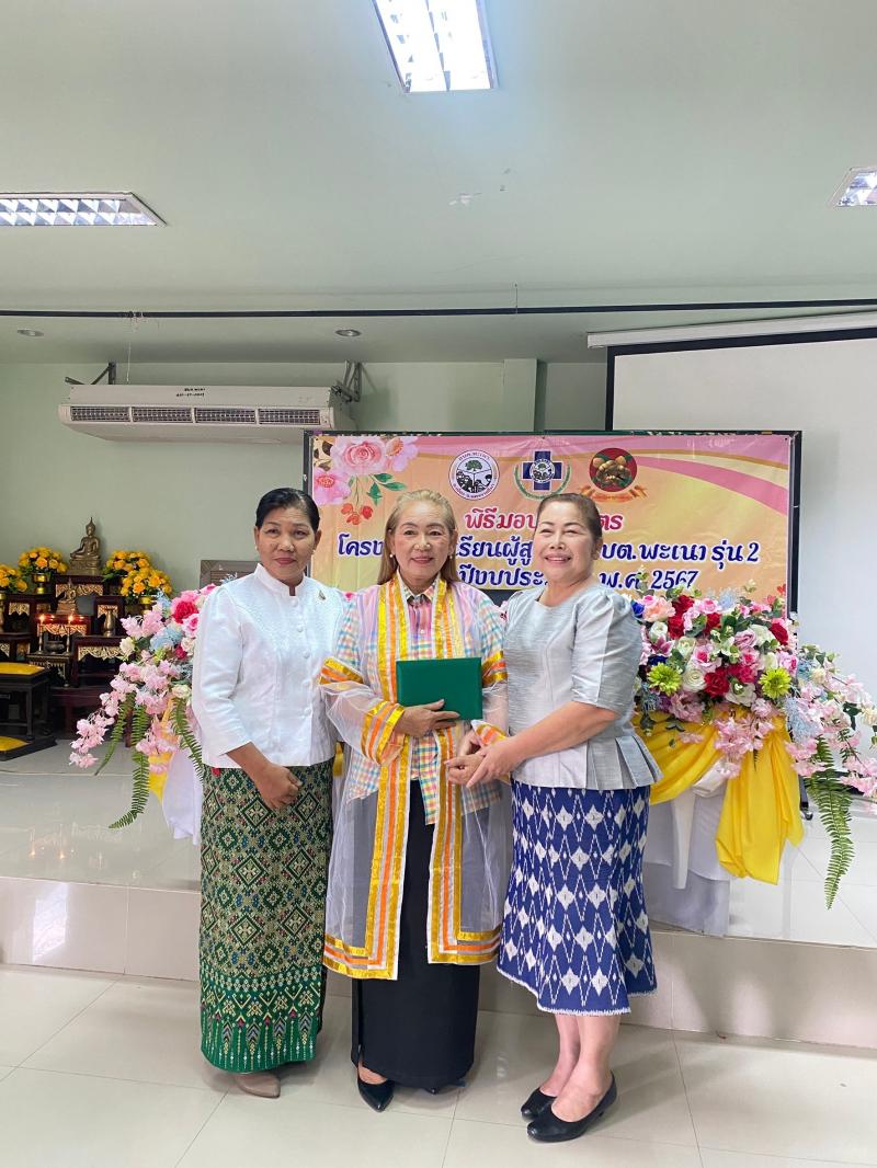 รายละเอียด : องค์การบริหารส่วนตำบลพะเนาร่วมกับศูนย์ผู้สูงอายุพัฒนาคุณภาพชีวิต ตำบลพะเนา จัดกิจกรรมปัจฉิมนิเทศก์และมอบวุฒิบัตรแก่ผู้เข้าร่วมกิจกรรมและผ่านการอบรมโครงการโรงเรียนผู้สูงอายุ รุ่นที่2/2567