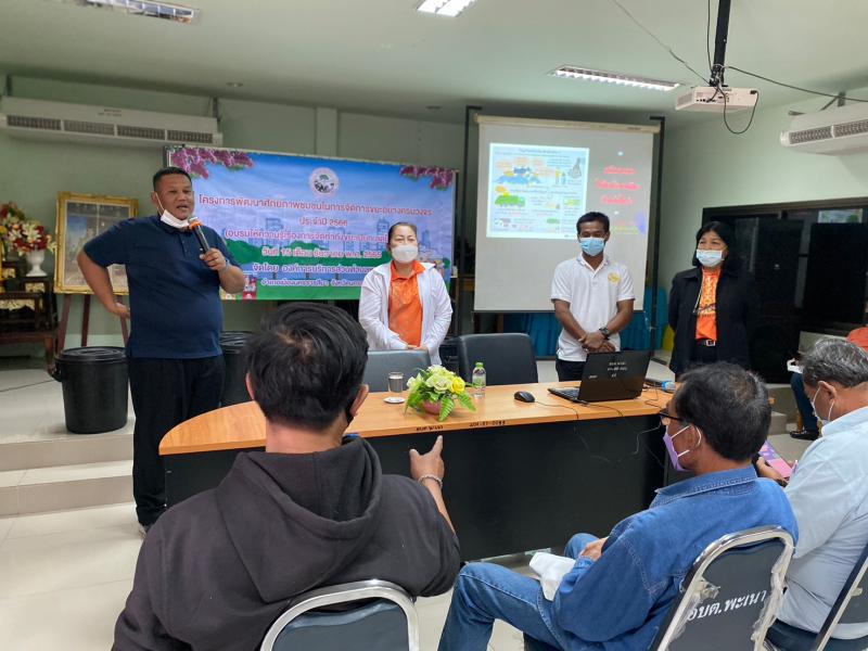 รายละเอียด : วันที่ 15 ธันวาคม 2565 อบต.พะเนา ภายใต้การนำของนางสาวพัฒน์นรี กุลรัตนาพันธ์ นายกองค์การบริหารส่วนตำบลพะเนา ดำเนินโครงการพัฒนาศักยภาพชุมชนในการจัดการขยะอย่างครบวงจร ประจำปี 2565 (อบรมให้ความรู้เรื่อง การจัดทำถังขยะเปียก ลดโลกร้อน) ณ ห้องประชุม อบต.พะเนา โดยบูรณาการร่วมกับผู้นำท้องที่ตำบลพะเนา นำโดยนายสมัคร ศรีชุ่ม กำนันตำบลพะเนา พร้อมด้วย ผู้ใหญ่บ้าน ผู้ช่วยผู้ใหญ่บ้าน แพทย์ประจำตำบล สารวัตรกำนัน สมาชิกสภา อบต. ประธานแม่บ้าน และประธาน อสม.ทุกหมู่ ร่วมขับเคลื่อนรณรงค์ส่งเสริมการปลูกฝังจิตสำนึกในการคัดแยกขยะโดยการนำเศษอาหารมาทิ้งให้ถูกที่ในกิจกรรม “ถังขยะเปียก ลดโลกร้อน”ในพื้นที่ตำบลพะเนา เพื่อลดปริมาณขยะในชุมชนอีกทั้งยังช่วยรักษาสิ่งแวดล้อมจากการลดการผลิตก๊าชเรือนกระจก ซึ่งเป็นสาเหตุของภาวะโลกร้อน กิจกรรมในวันนี้ได้มอบถังขยะเปียกให้กับผู้นำท้องที่เพื่อเป็นต้นแบบและขยายผลการจัดทำถังขยะเปียกในชุมชน และกิจกรรมสาธิตการทำถังขยะเปียกในพื้นที่จริง บ้านมะเริงน้อย หมู่ที่ 1 หมู่บ้านนำร่องและเป็นหมู่บ้านต้นแบบที่มีครัวเรือนจัดทำถังขยะเปียกลดโลกร้อน 100% นำโดยนายฉัตรชัย ภู่เกิดชายทะเล ผู้ใหญ่บ้านบ้านมะเริงน้อย