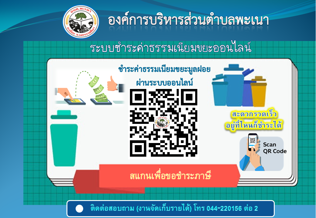ประชาสัมพันธ์ขั้นตอนในการชำระค่าธรรมเนียมจัดเก็บขยะออนไลน์ สำหรับประชาชน องค์การบริหารส่วนตำบลพะเนา [1 สิงหาคม 2565]