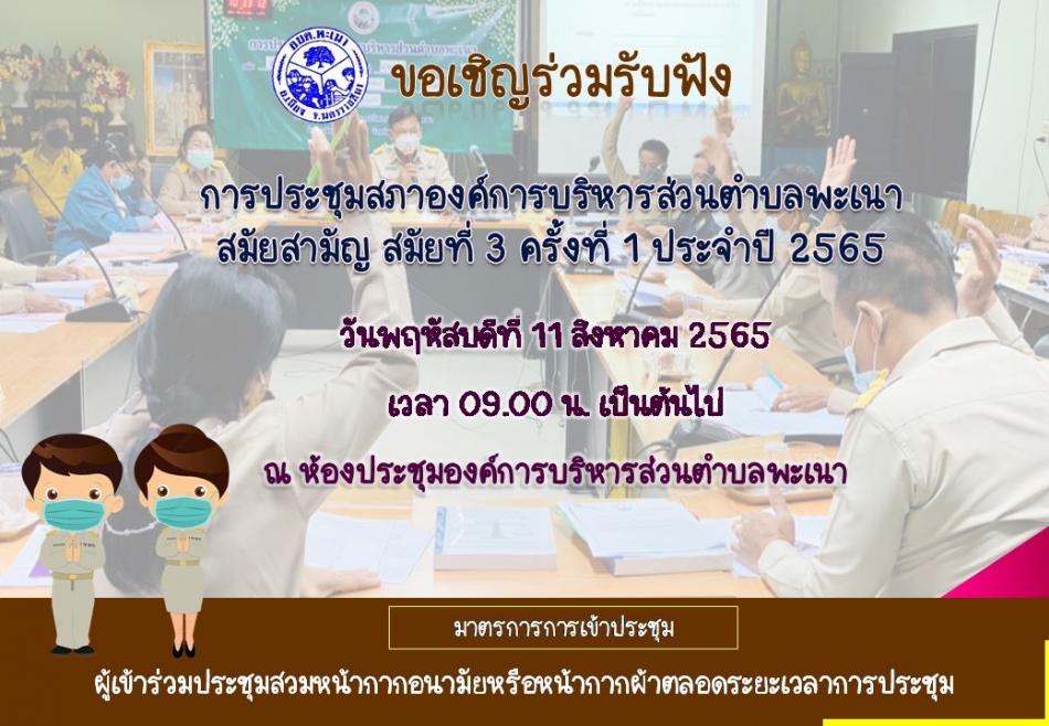 ขอเชิญร่วมรับฟัง การประชุมสภาองค์การบริหารส่วนตำบลพะเนา สมัยสามัญ สมัยที่ 3 ครั้งที่ 1 ประจำปี 2565 [5 สิงหาคม 2565]