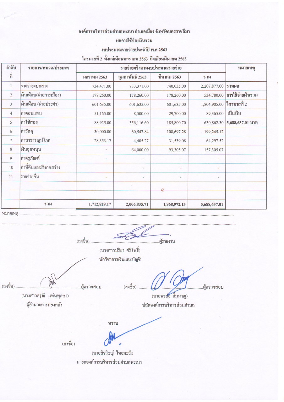 รายงานผลการใช้จ่ายเงินรวมไตรมาสที่ 2 ประจำปีงบประมาณ 2563